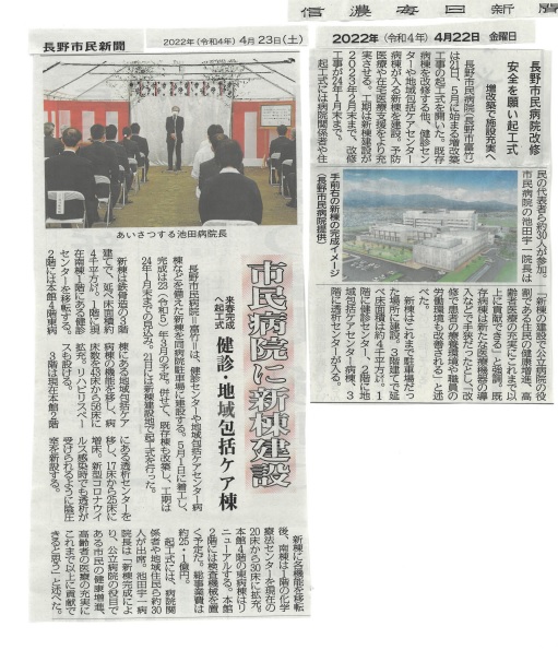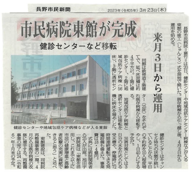 この度、清水建設と長電建設がJVで施工しました長野市民病院増築工事が竣工し、3月20日(月)