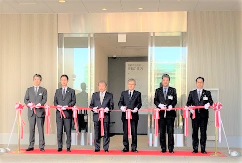 長野市民病院池田病院長、清水建設森井常務執行役員、当社宮下社長等でテープカットが行われました。