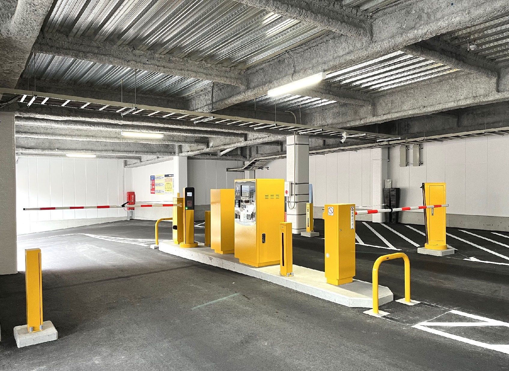 自走式立体駐車場6F・収容台数423台、出入口には車番認証システ