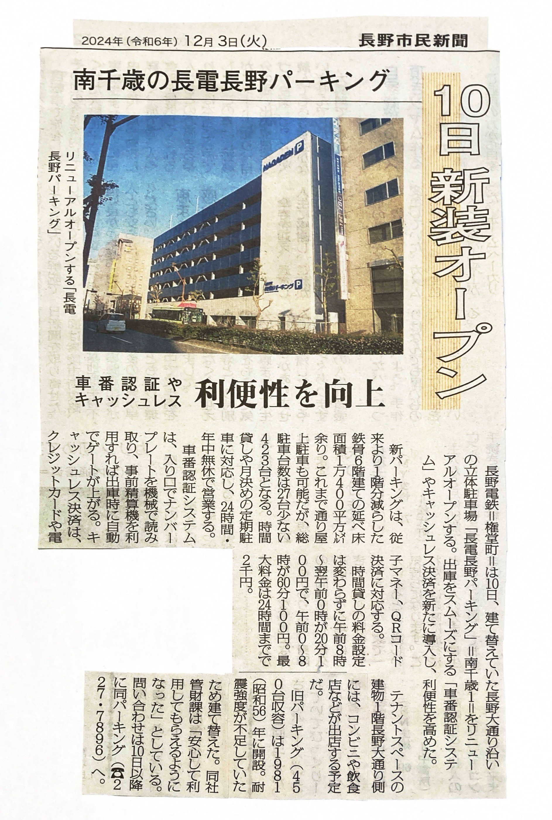 2024.12.10 1年半にわたる解体・建替え工事期間を経てこの度、無事長電長野パーキ