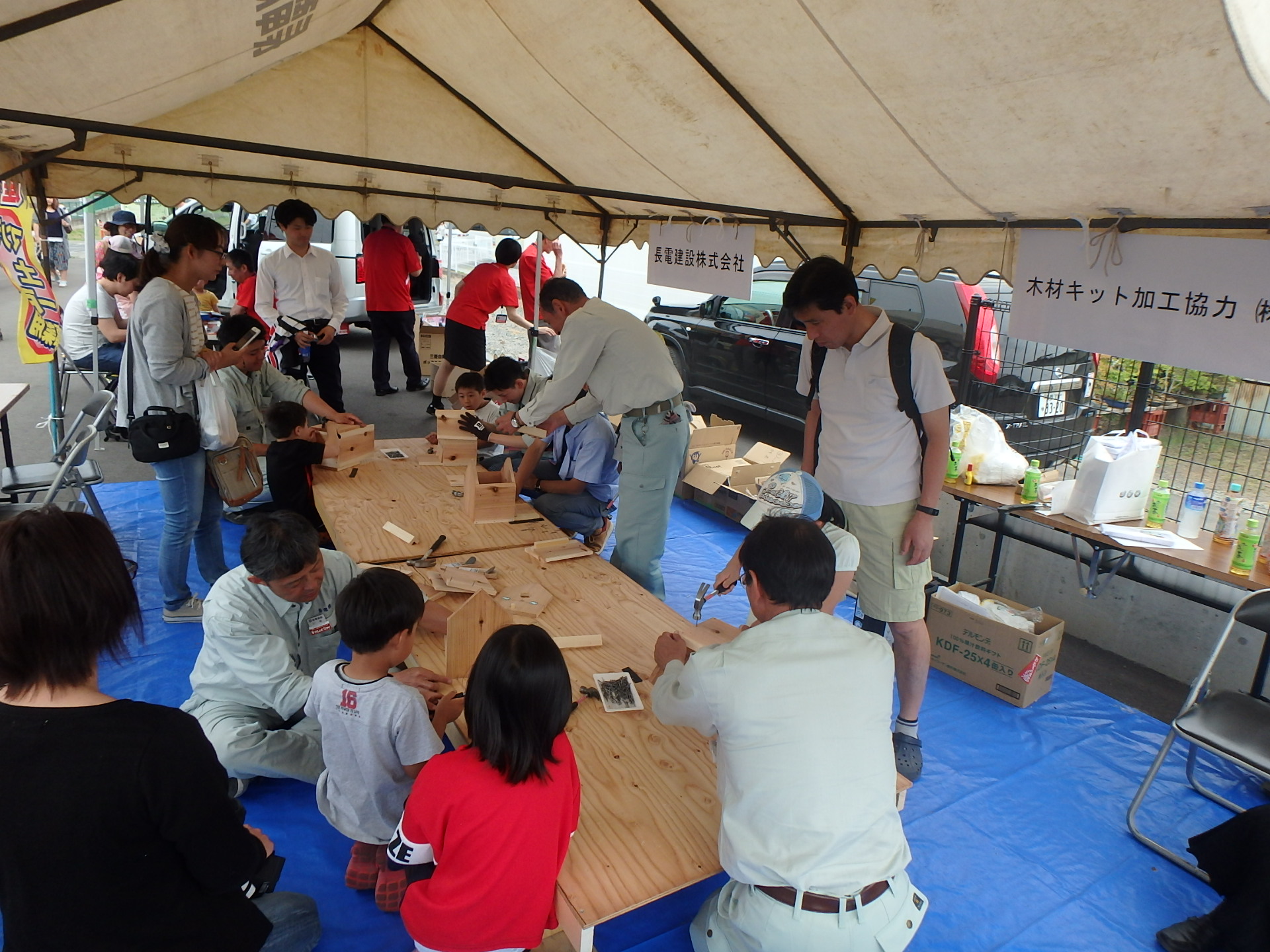 当社「長電建設ブース」では、「親子木工教室」と「BESS輪投げゲーム」を開催し、多くの親子連れのお客様に楽しんでいただきました。