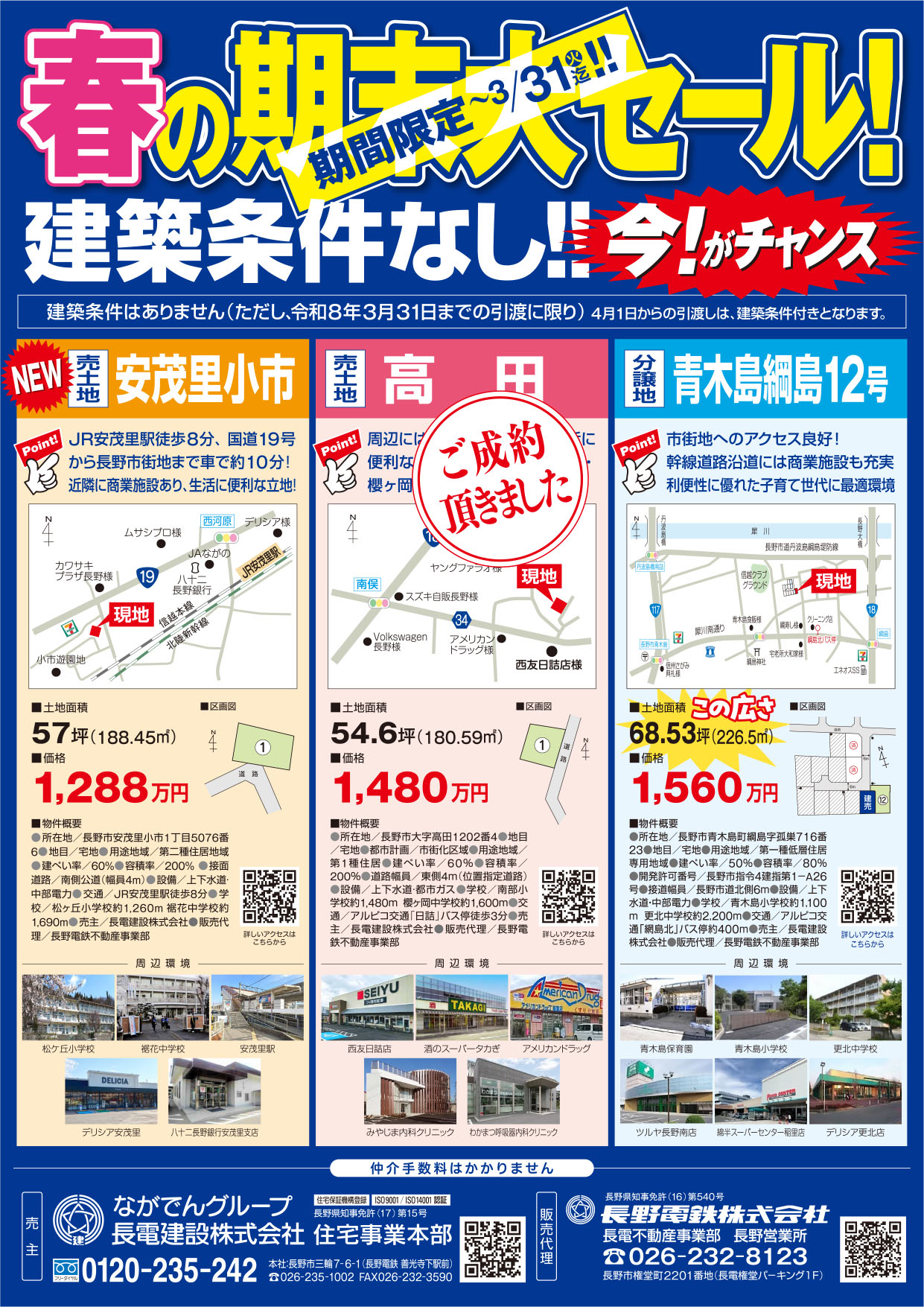 「春の期末大セール」として、弊社分譲地のうち、安茂里小市・青木島綱島12号区画を、