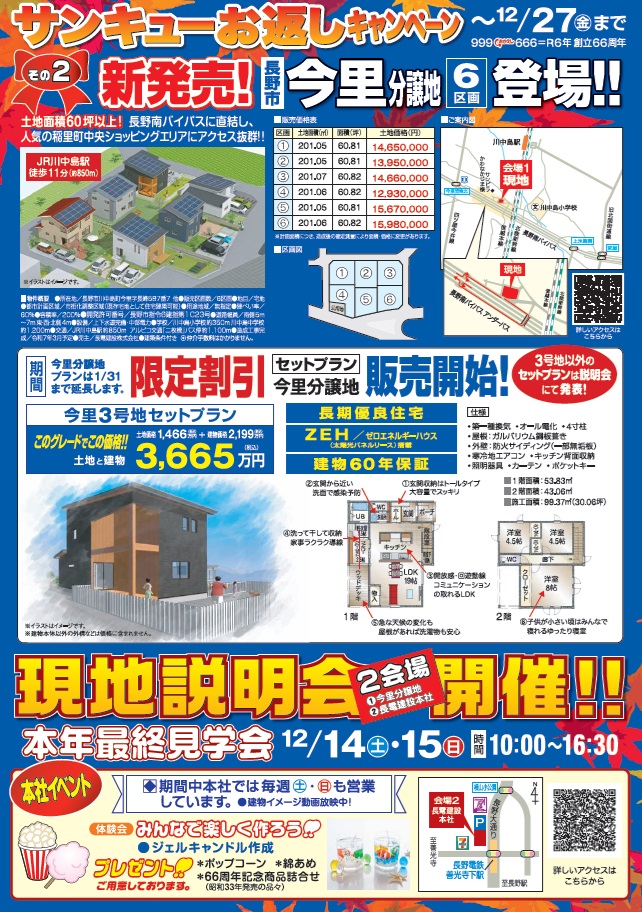 2024.12.09 ◆ サンキューお返しキャンペーン青木島綱島分譲地11号地期間限定割引セットプラン発表